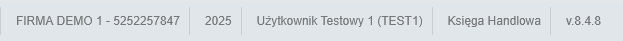 Dolny pasek systemu eKsięgowy w prawej części zawiera informacje o: