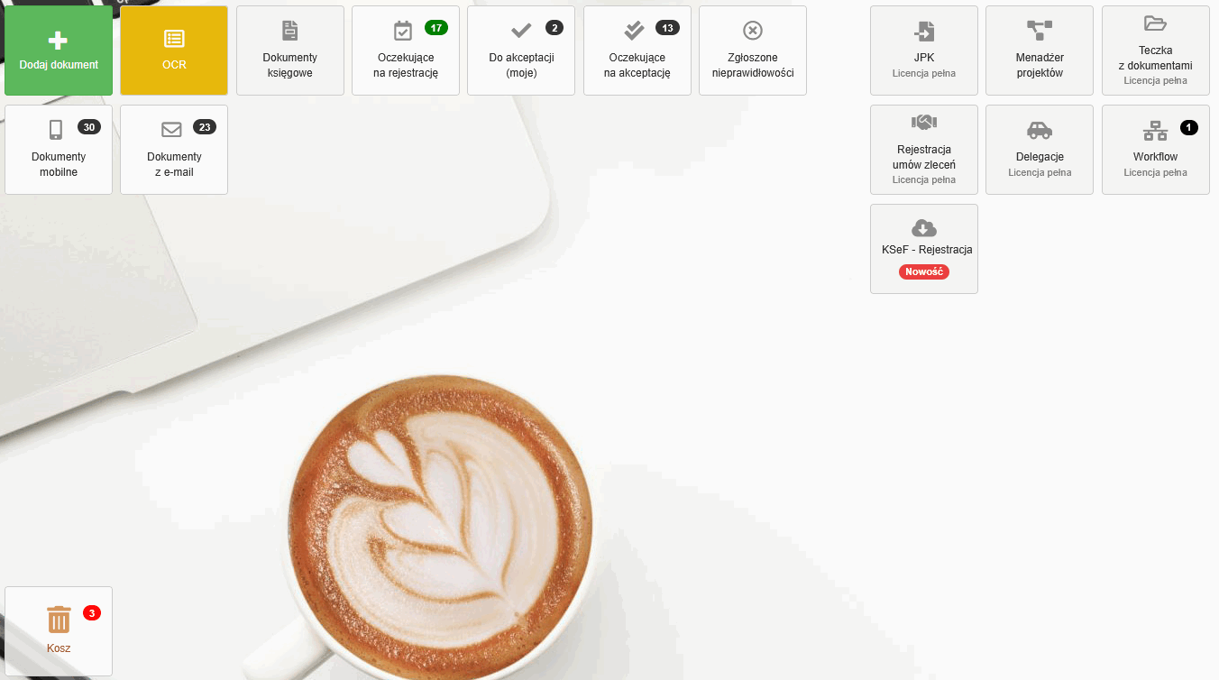 Jeżeli na danym kafelku jest dodatkowo umieszczona liczba oznacza ona ilość dokumentów w danym module czekających na naszą reakcję