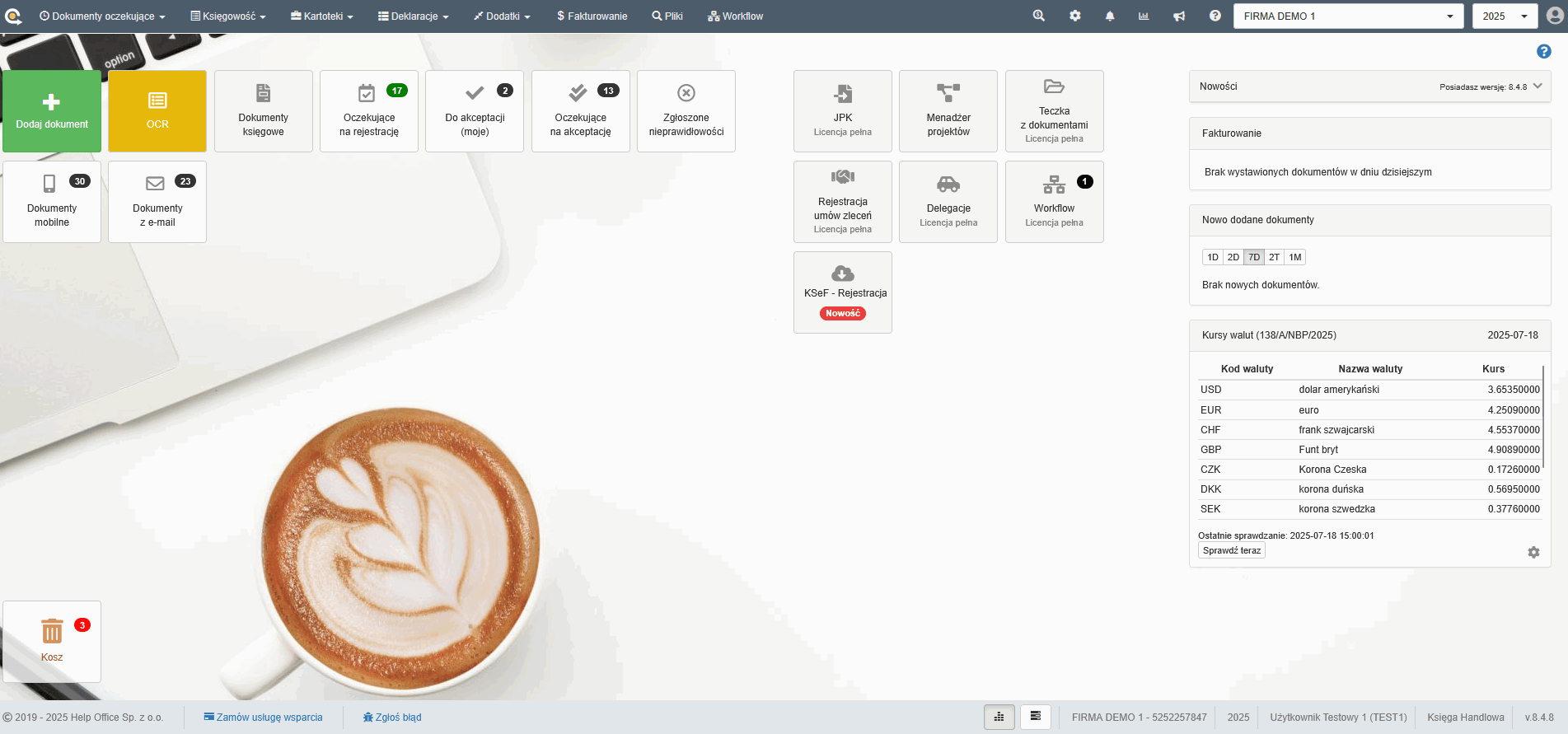 Po zalogowaniu do systemu eKsięgowy widzimy główny pulpit operatora.