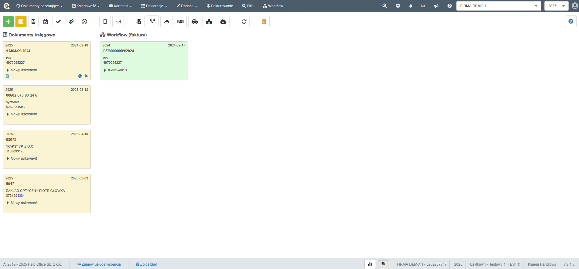 - nowo dodane dokumenty - informuje o nowych pustych dokumentach ostatnio dodanych we wszystkich firmach