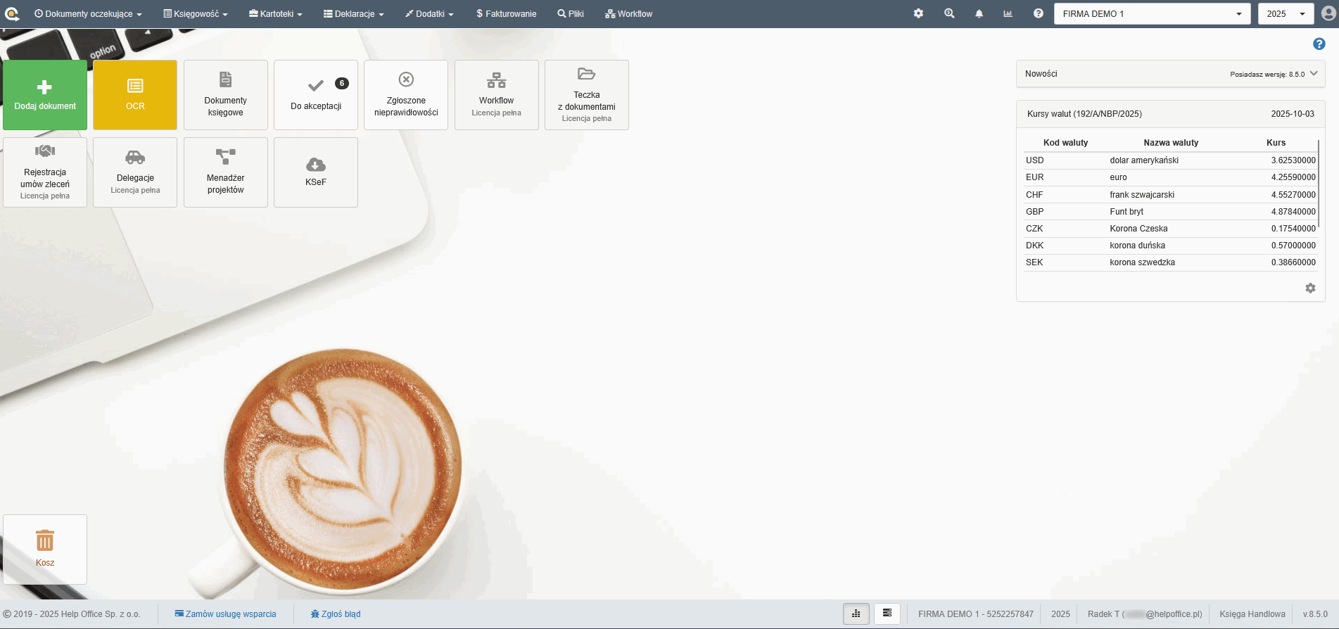 Każdy użytkownik otrzymuje wygenerowany dostęp przez administratora systemu eKsięgowy, za pomocą którego loguje się do systemu obiegu dokumentów. Przekazane dokumenty w każdym momencie są dostępne w systemie z odpowiednimi uwagami, informacjami pochodzącymi np. z działu księgowego, kierownika - przełożonego.