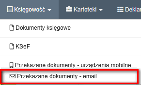 lub z menu górnego "księgowość > Przekazane dokumenty - email"