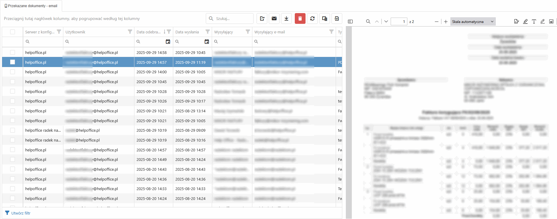 Po uruchomieniu modułu mamy dostęp do wszystkich przesłanych dokumentów na skonfigurowany adres e-mail.