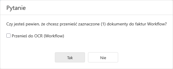 Przy przenoszeniu do Workflow (faktury) system zapyta się czy chcemy wstępnie rozpoznać dokument