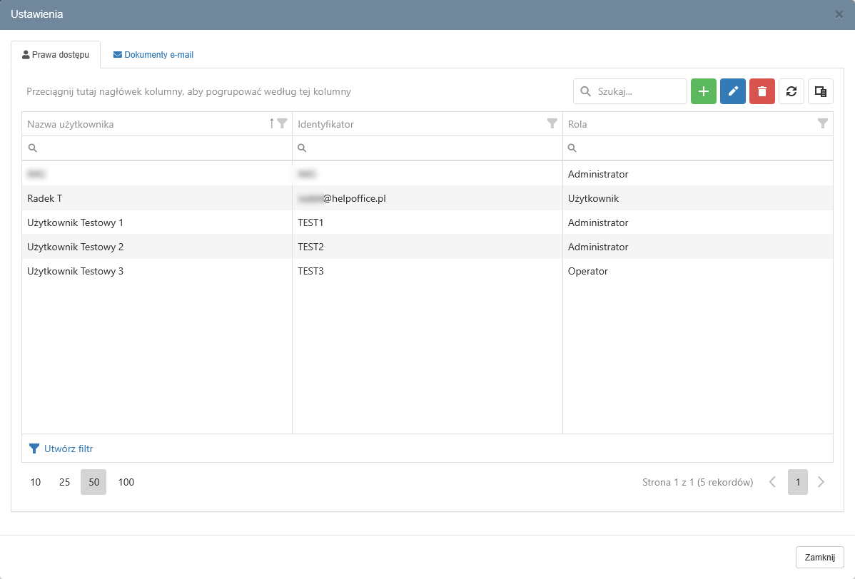 Na głównej zakładce "Prawa dostępu" można przypisać operatorów lub użytkowników którzy będą mieli dostęp do projektów.
