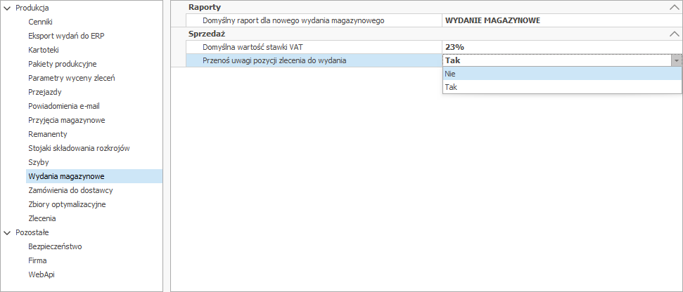 Dla wydań magazynowych można ustawić domyślny raport, który program będzie podpowiadał do wydruku od razu po utworzeniu nowego wydania magazynowego.