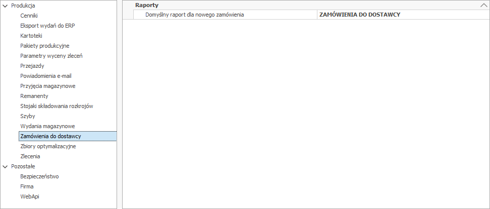 Dla zamówień do dostawcy można ustawić domyślny raport, który program będzie podpowiadał do wydruku od razu po utworzeniu nowego zamówienia do dostawcy.