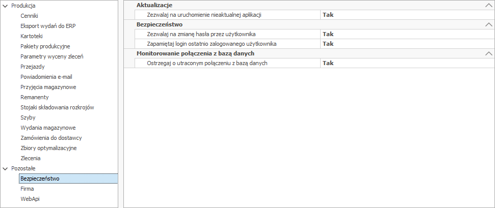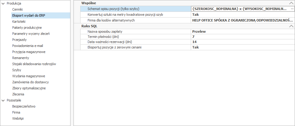 To ustawienia, które wpływają na pełną funkcjonalność programu. Są one stosowane jednocześnie dla wszystkich stanowisk, w przeciwieństwie do ustawień indywidualnych dla stanowiska.