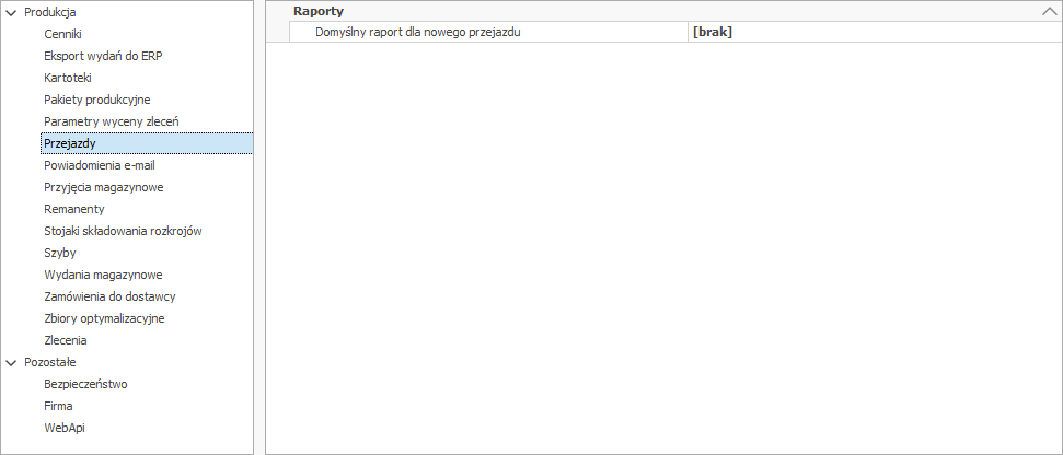 Dla przejazdów można ustawić domyślny raport, który program będzie podpowiadał do wydruku od razu po utworzeniu nowego przejazdu.