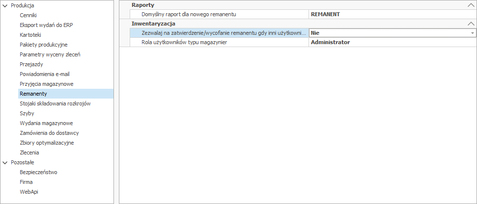 Rola użytkowników typu magazynier określa, która rola i użytkownicy z tą rolą będą mogli przeprowadzać remanenty.