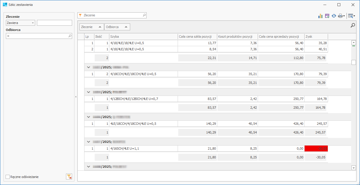 2. Koszty pozycji zleceń
