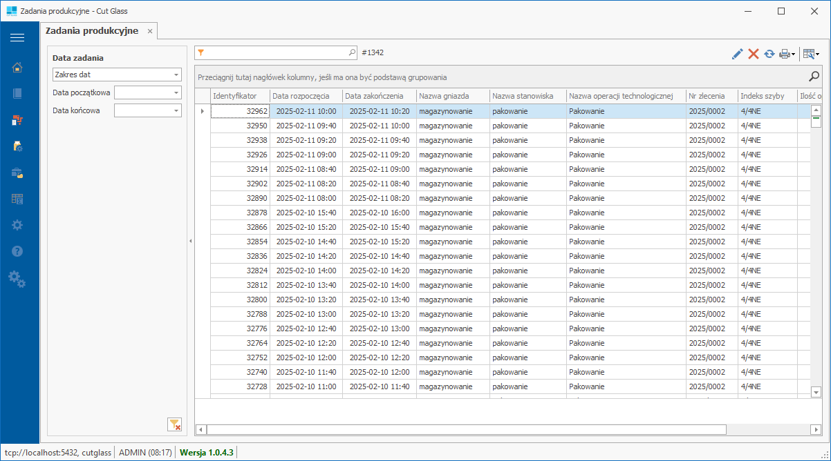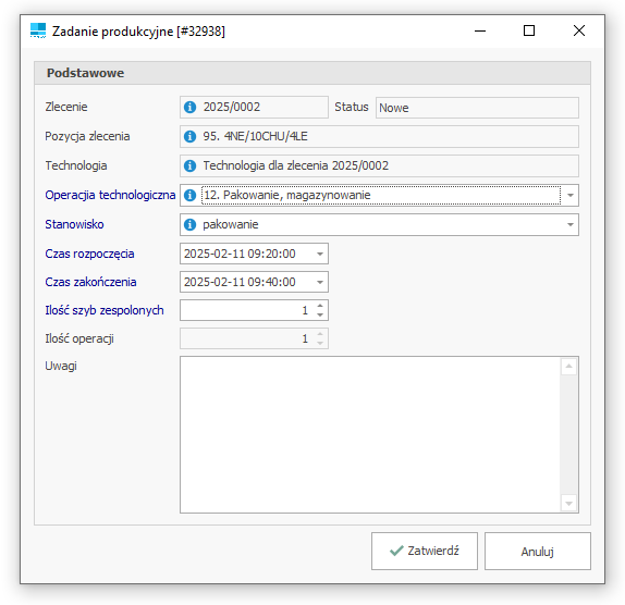 Operacje możliwe do wykonania w kontekście zadań produkcyjnych to: