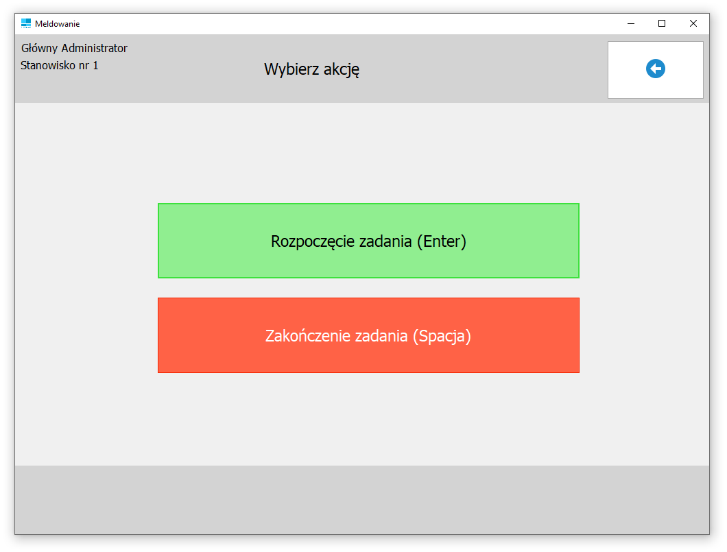 Każdy operator posiada własne okno przyjęcia i meldunku zadania. Hasło do okna meldunków nadaje się w ustawieniach użytkownika.