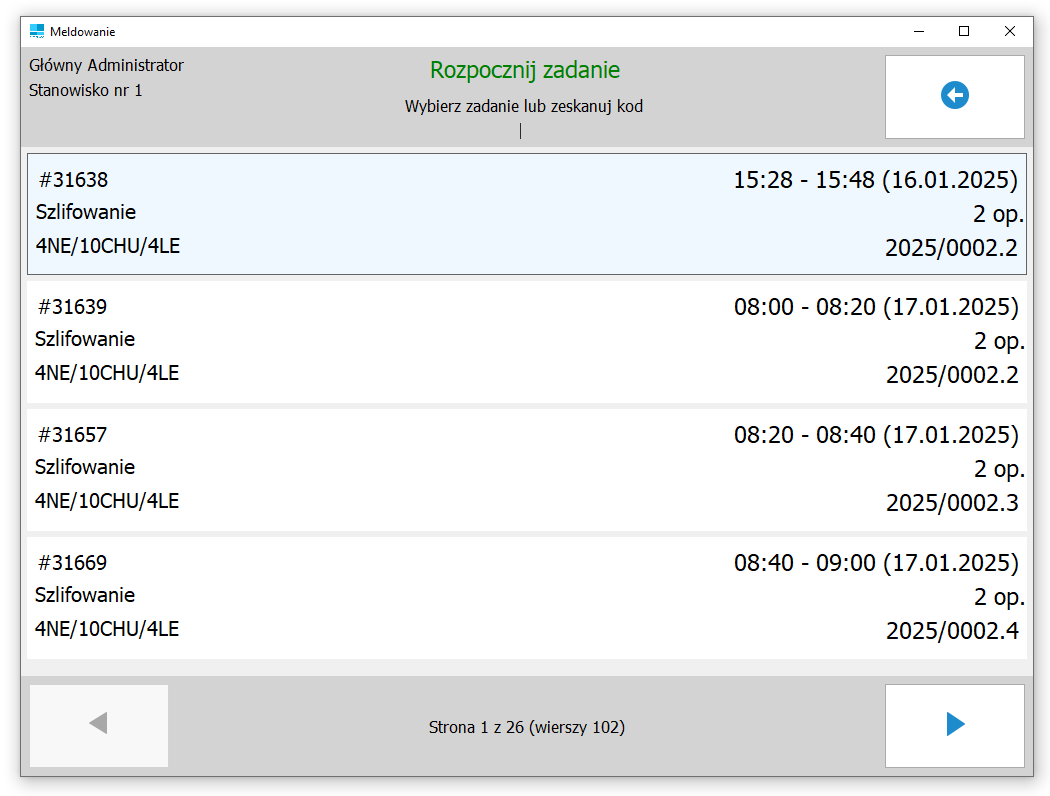 Czas operacyjny wybranego zadania jest liczony automatycznie od momentu rozpoczęcia zadania.