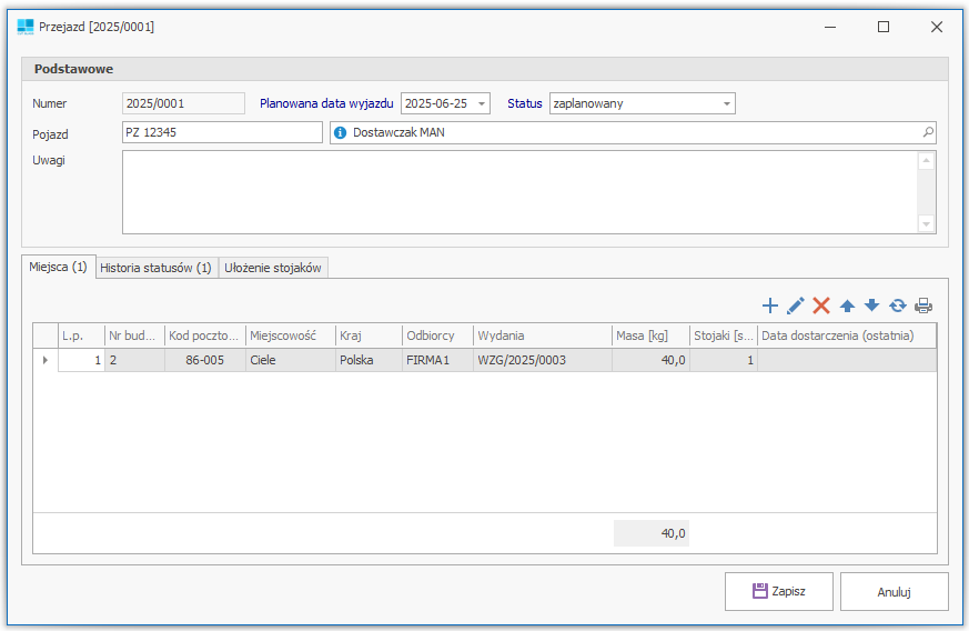 - Adresy dostaw są ustawione automatycznie na podstawie danych z wydania magazynowego.