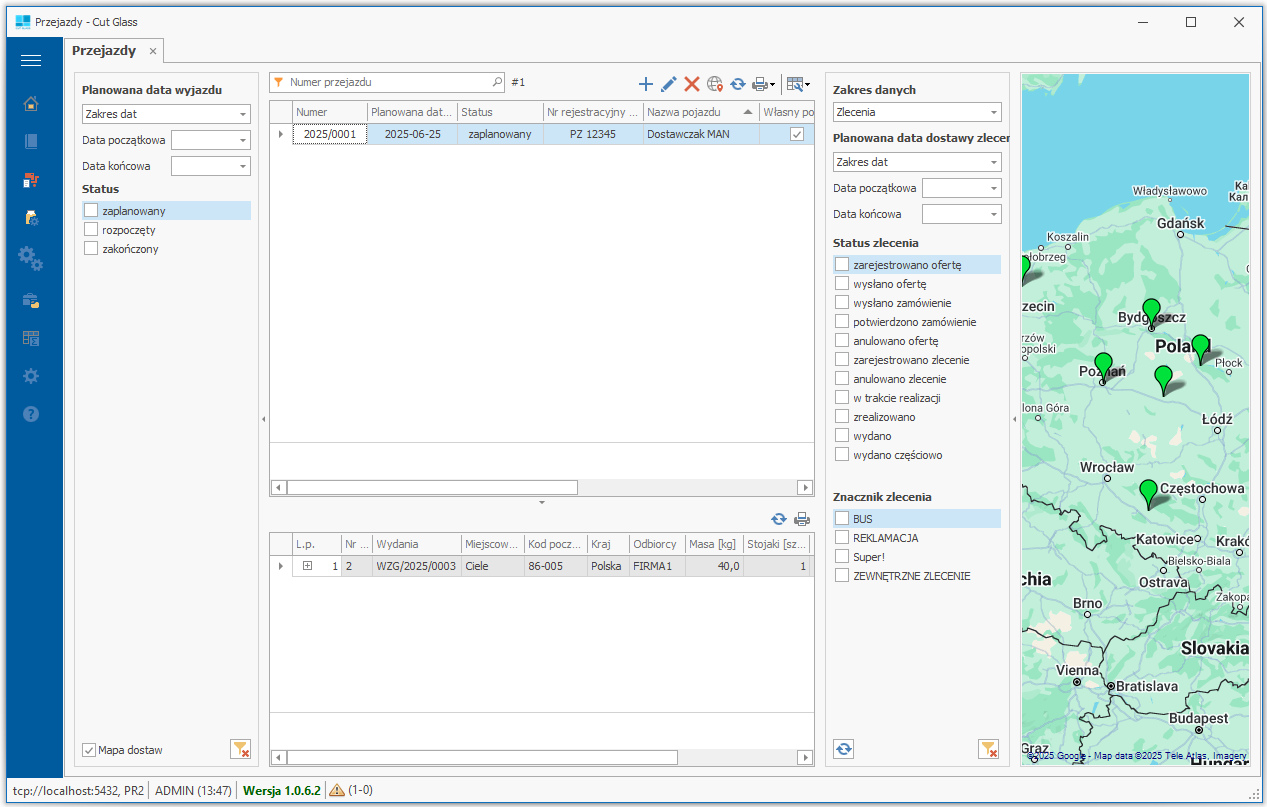 Moduł przejazdy umożliwia generowanie i planowanie przejazdów do wybranych kontrahentów. Przejazdy tworzymy na podstawie gotowych wydań magazynowych.