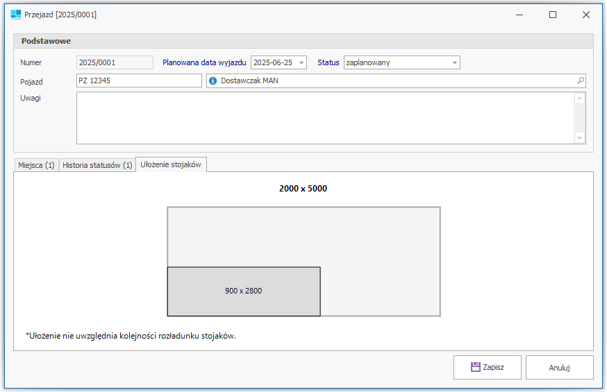 Ułożenie nie uwzględnia kolejności rozładunku stojaków.
