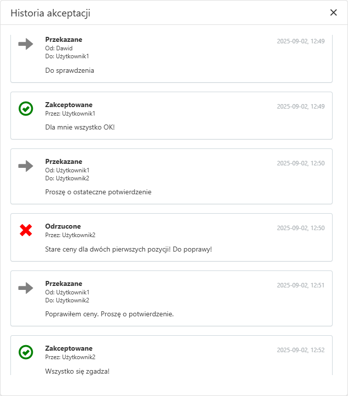 akceptuj / odrzuć - gdy wniosek został przekazany do danego użytkownika, to może on zaakceptować lub odrzucić dany wniosek