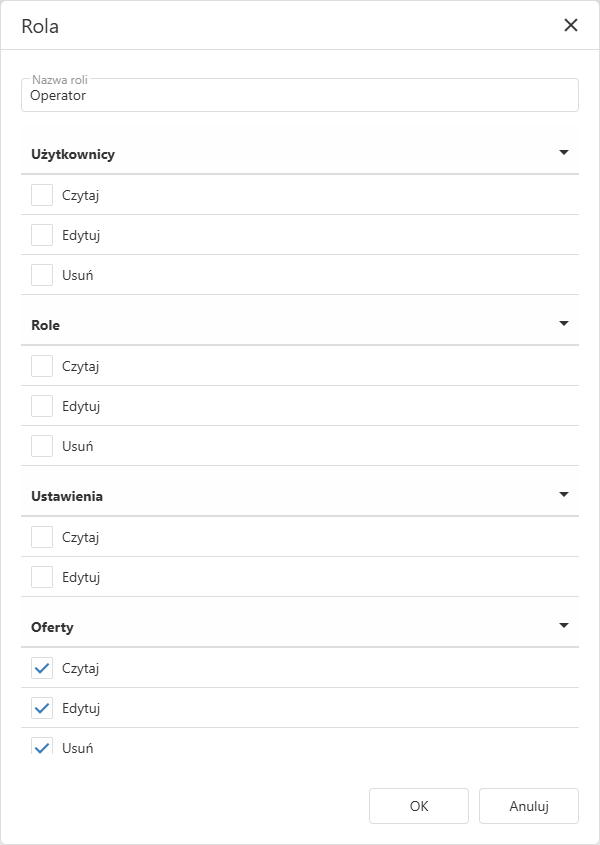 edycja roli,