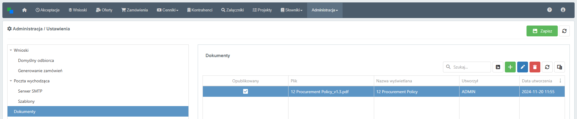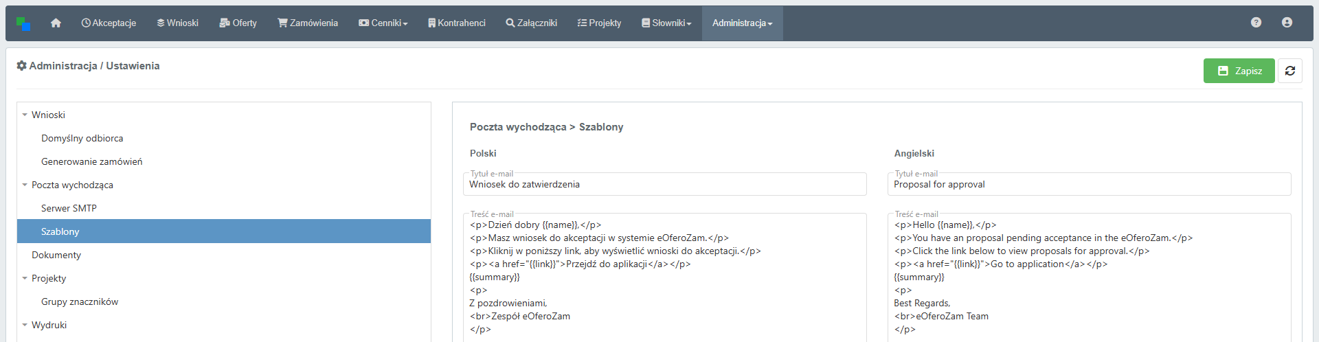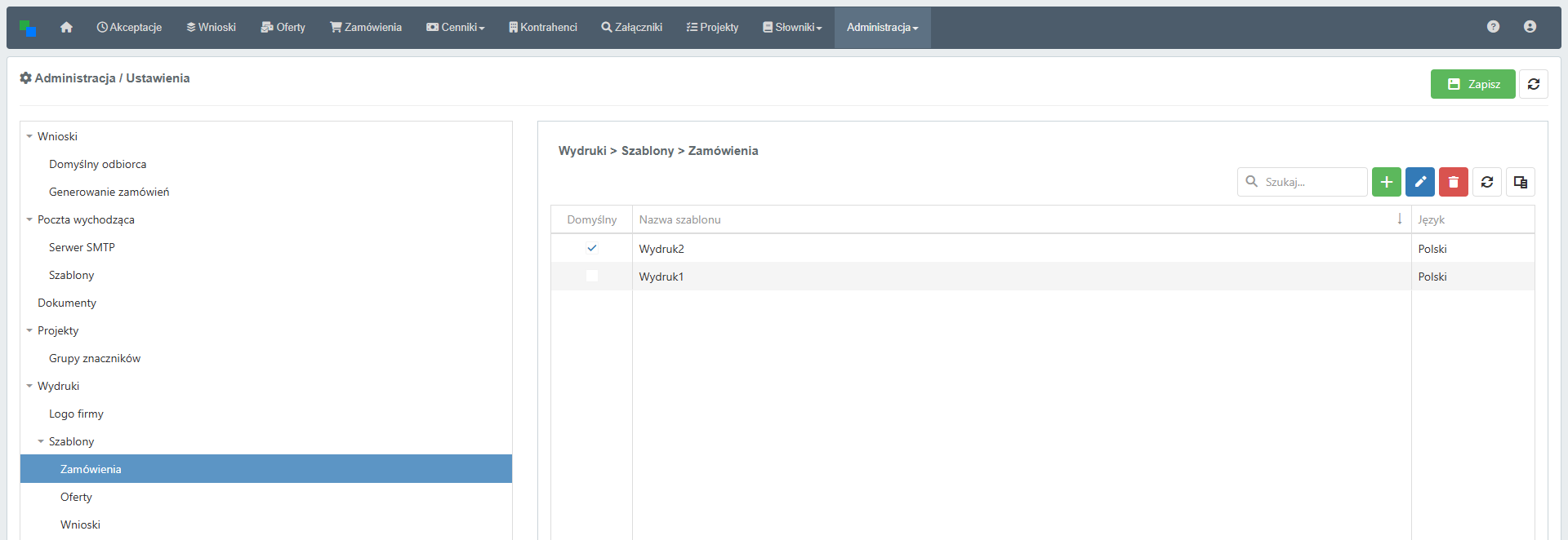 Szablony Zamówień / Ofert / Wniosków