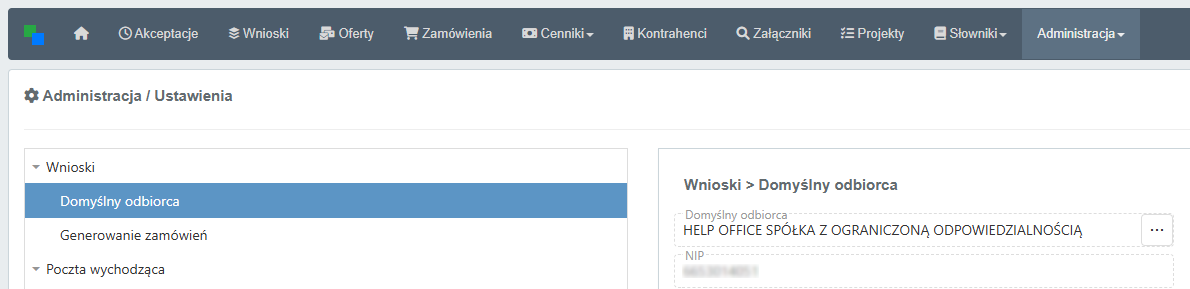 Ustawienie automatycznie przypisuje wpisanego tutaj odbiorcę na wszystkich nowych wnioskach.
