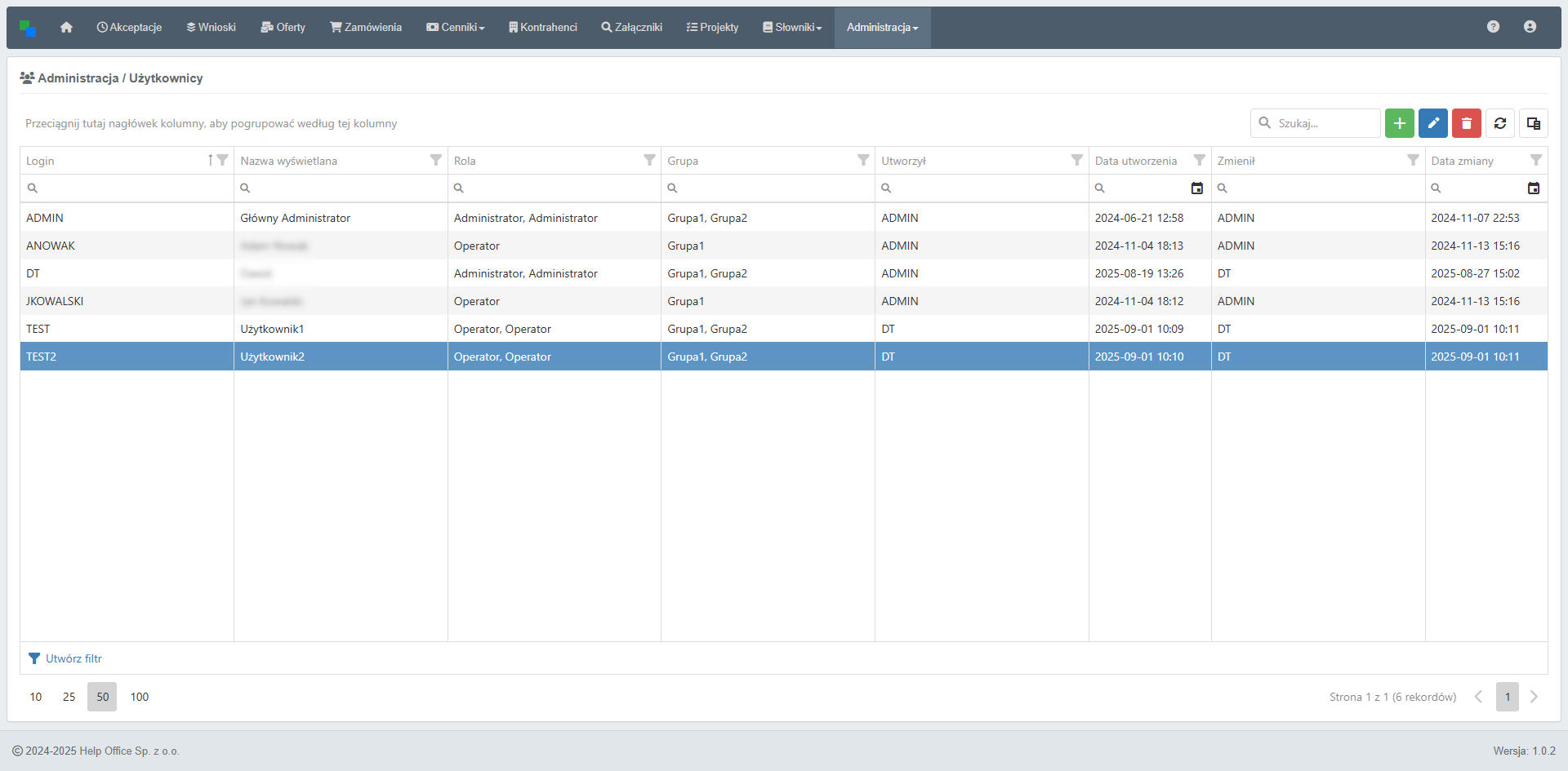Pełna lista użytkowników, biorących udział w obrocie dokumentów systemu.