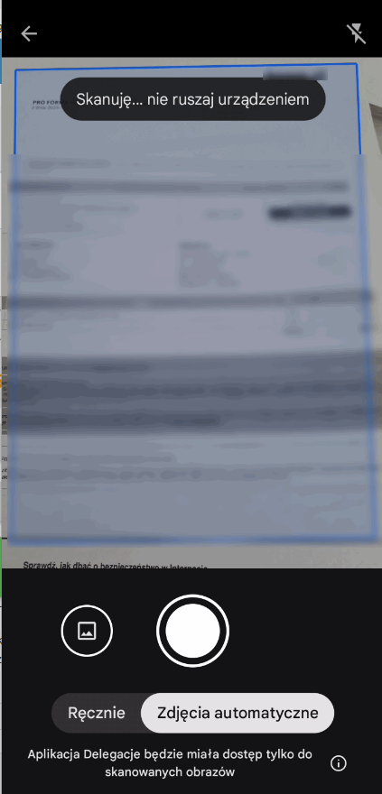 Po wybraniu przycisku użytkownik ma możliwość zrobienia zdjęcia dokumentu lub dodanie dokumentu z galerii zdjęć