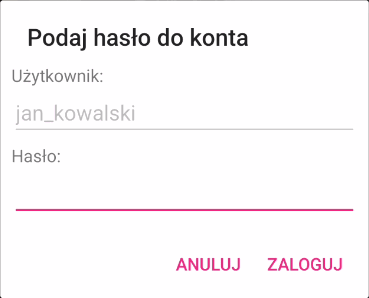 Po wpisaniu hasła użytkownik zostanie zalogowany a dane logowania zapamiętane.