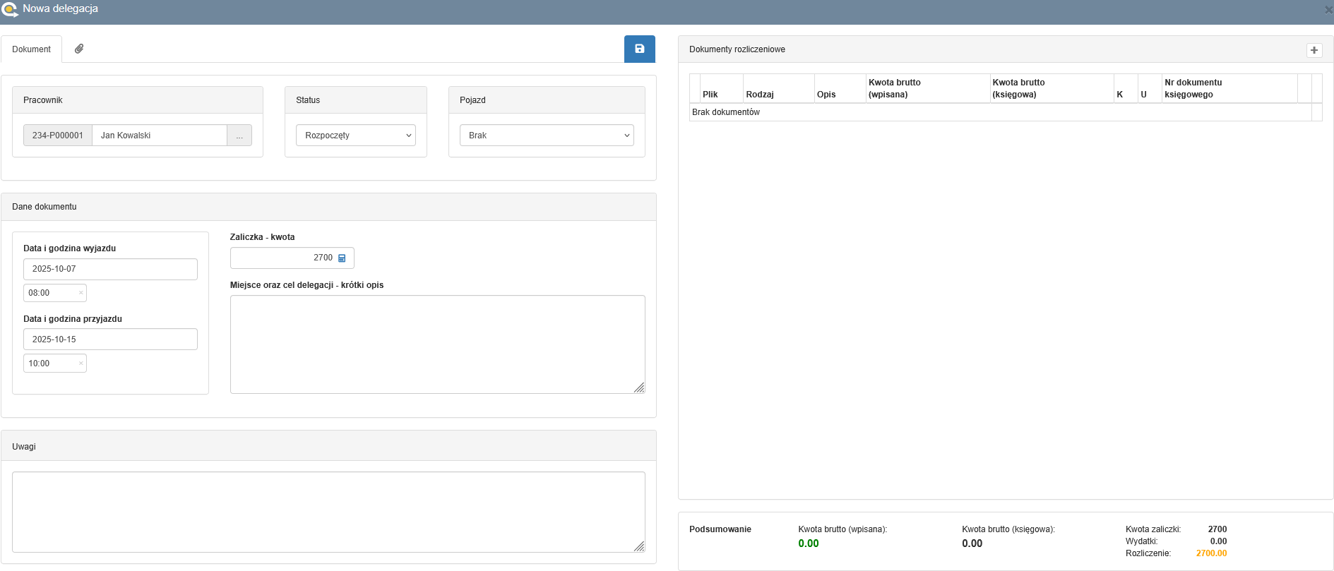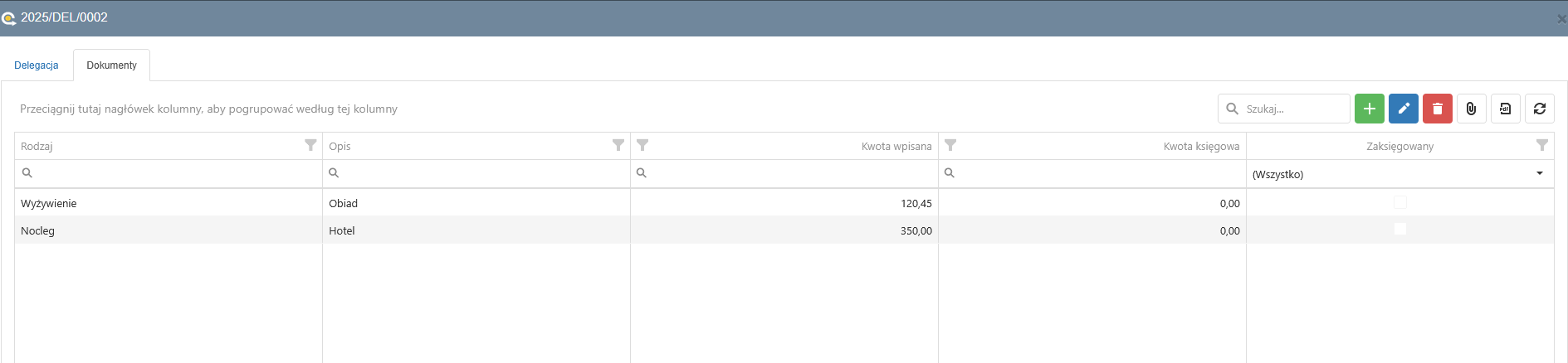 Operator może również dodawać dokumenty do delegacji. Można to zrobić za pomocą przycisku