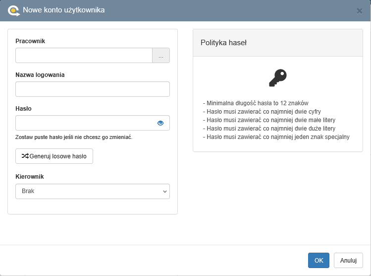 Aby pracownik mógł dodawać dokumenty do delegacji, najpierw należy założyć konto dla takiego pracownika w systemie.
