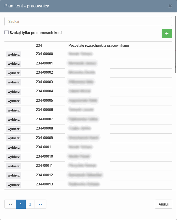 Jeśli nie ma pracownika w planie kont, można go dodać przyciskiem